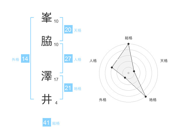 峯脇 澤井さんを姓名の画数から五運を鑑定