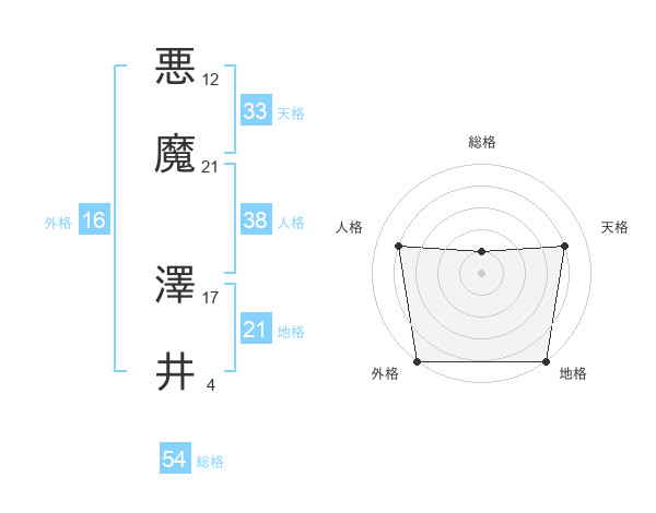 悪魔 澤井さんの総格は54画の1点!
