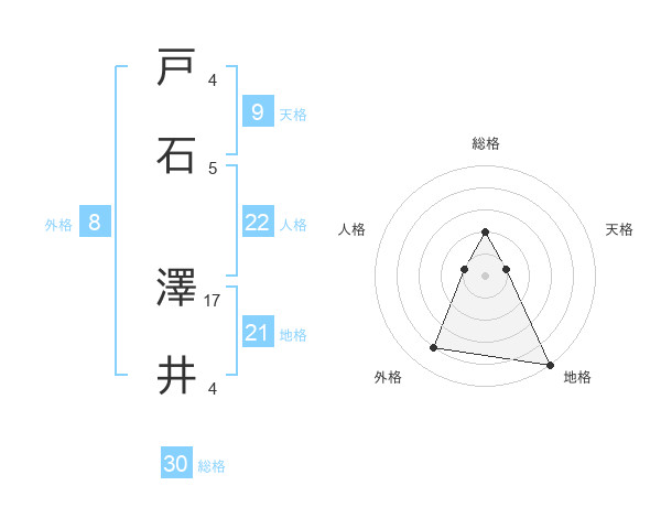 戸石 澤井さんの総格は30画の2点!