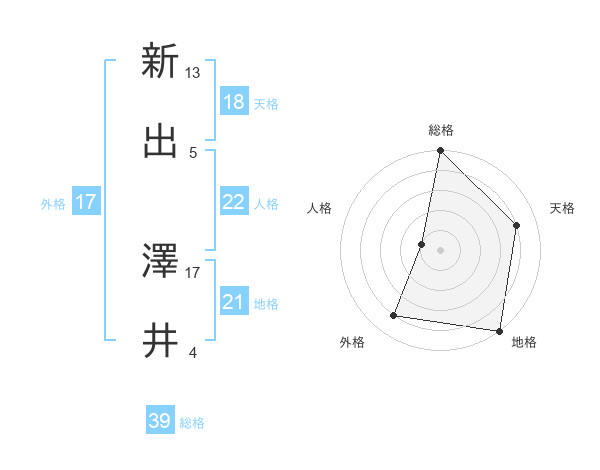 新出 澤井さんの地格は21画の5点!