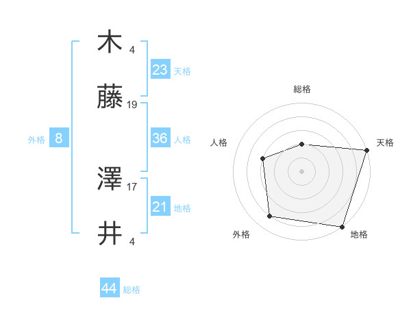 木藤 澤井さんの総格は44画の2点!