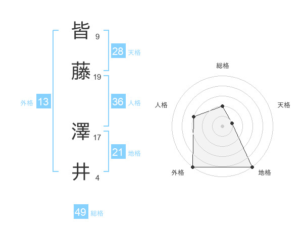皆藤 澤井さんを姓名の画数から五運を鑑定