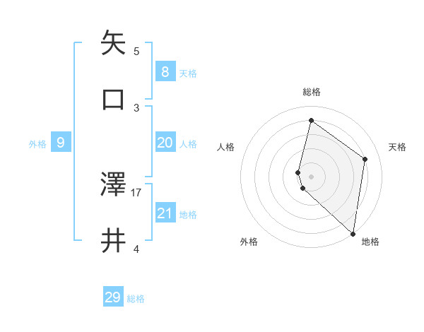矢口 澤井さんの総格は29画の4点!