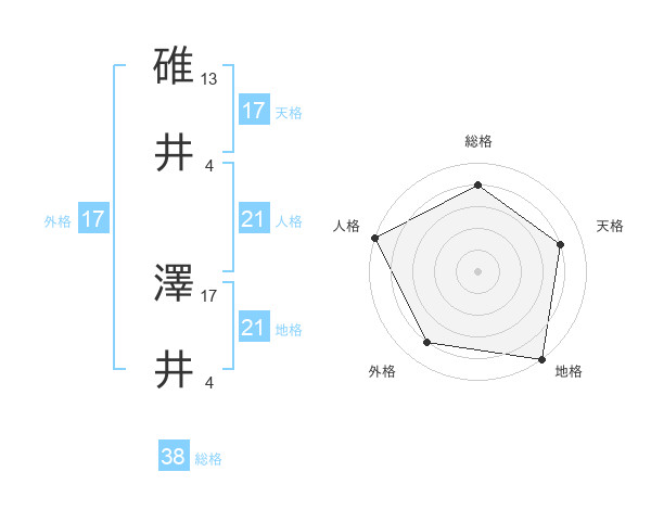 碓井 澤井さんの地格は21画の5点!