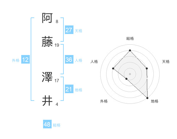 阿藤 澤井さんを姓名の画数から五運を鑑定