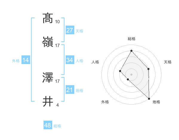 髙嶺 澤井さんの総格は48画の4点!