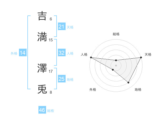 吉満 澤兎さんを姓名の画数から五運を鑑定