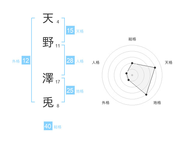 天野 澤兎さんの総格は40画の2点!