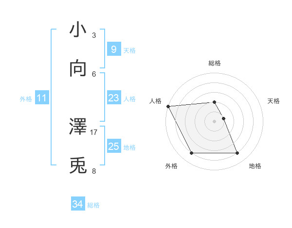小向 澤兎さんを姓名の画数から五運を鑑定