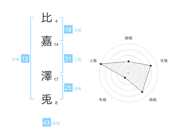 比嘉 澤兎さんの人格は31画の5点!
