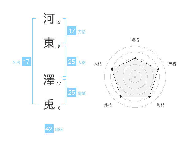 河東 澤兎さんを姓名の画数から五運を鑑定