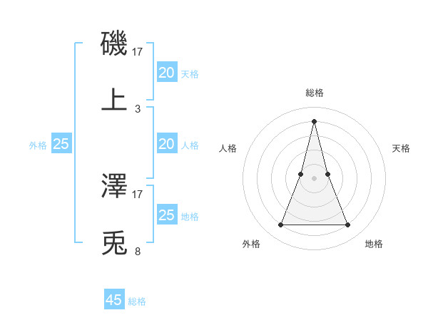 磯上 澤兎さんの外格は25画の4点!