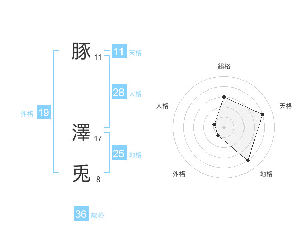 豚 澤兎さんの外格は19画の1点!