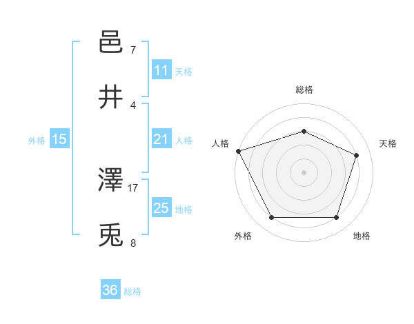 邑井 澤兎さんの天格は11画の4点!