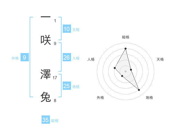 一咲 澤兔さんを姓名の画数から五運を鑑定