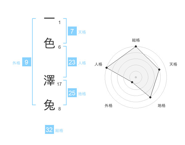 一色 澤兔さんを姓名の画数から五運を鑑定