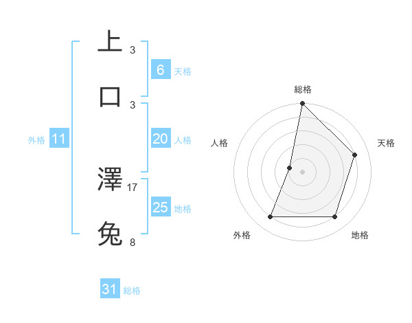 上口 澤兔さんを姓名の画数から五運を鑑定