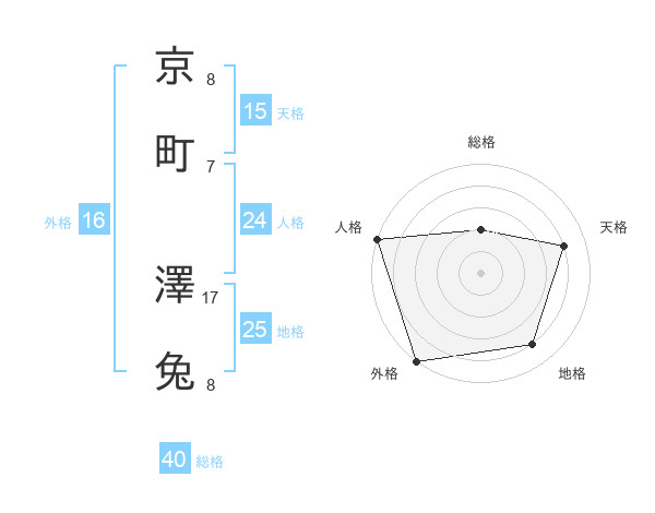 京町 澤兔さんの地格は25画の4点!