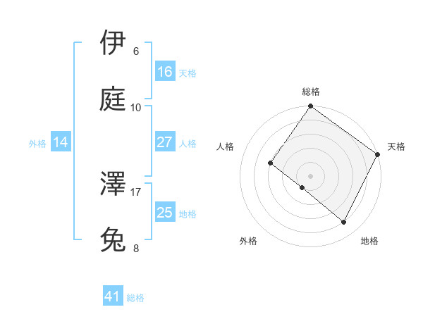 伊庭 澤兔さんの地格は25画の4点!
