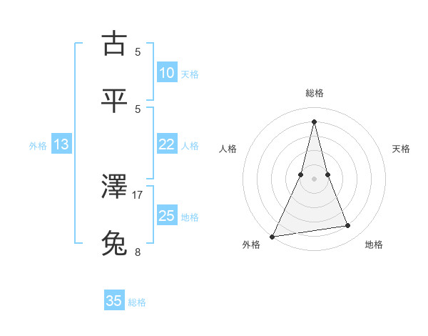 古平 澤兔さんを姓名の画数から五運を鑑定