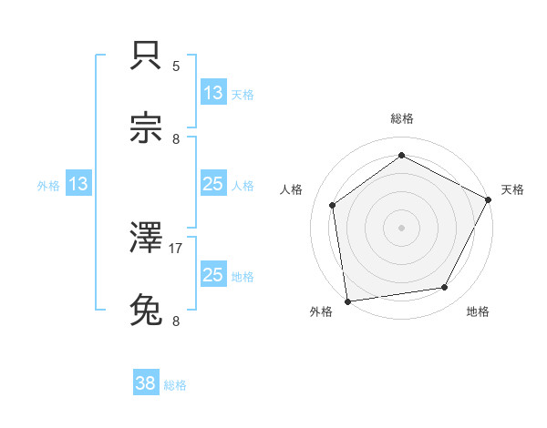 只宗 澤兔さんを姓名の画数から五運を鑑定