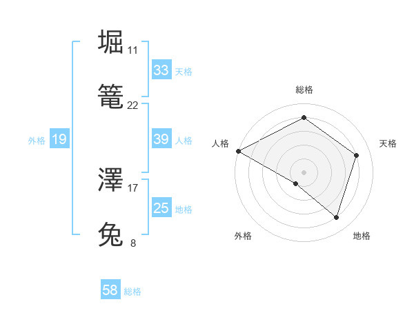 堀篭 澤兔さんの総格は58画の4点!