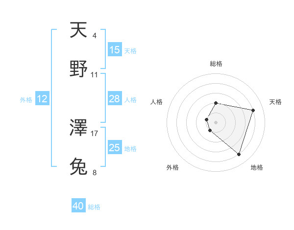 天野 澤兔さんの総格は40画の2点!