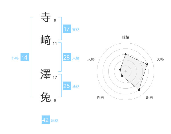 寺﨑 澤兔さんの総格は42画の3点!
