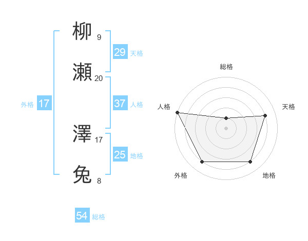 柳瀬 澤兔さんを姓名の画数から五運を鑑定