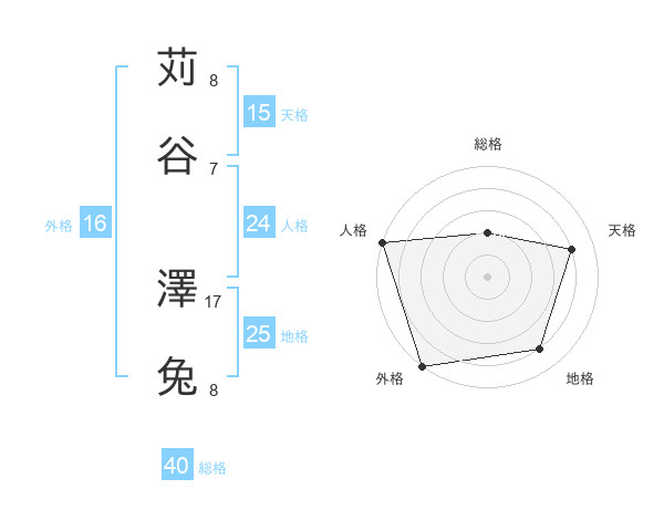 苅谷 澤兔さんを姓名の画数から五運を鑑定