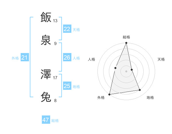 飯泉 澤兔さんの総格は47画の5点!