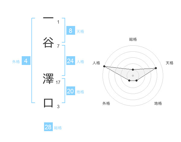 一谷 澤口さんの総格は28画の1点!