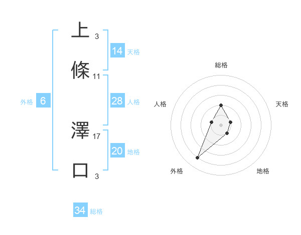 上條 澤口さんの総格は34画の2点!