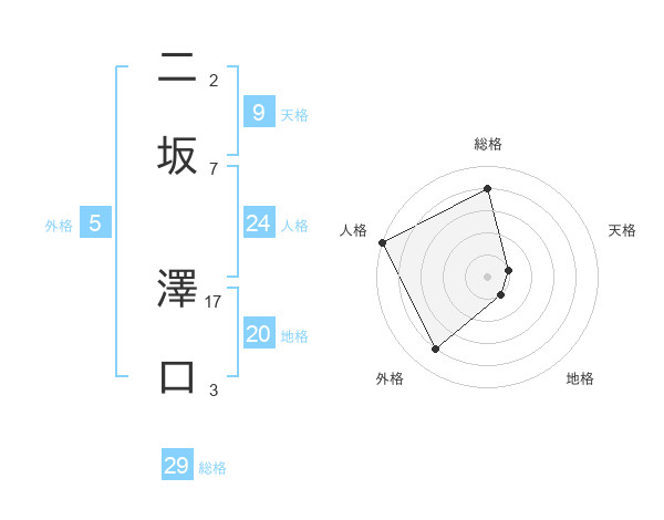 二坂 澤口さんの総格は29画の4点!