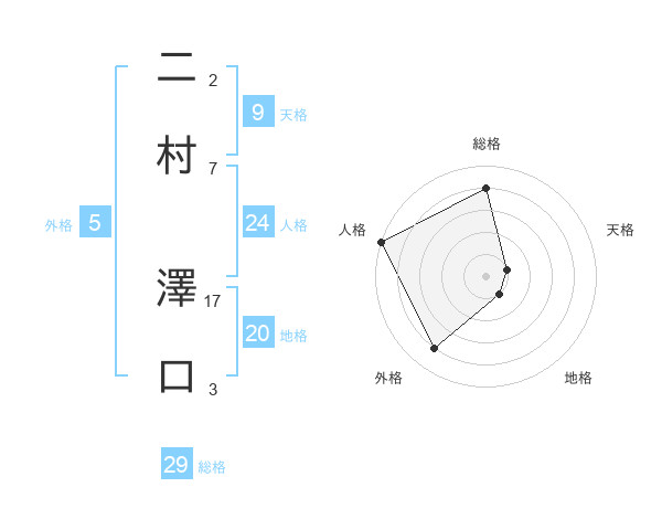 二村 澤口さんの総格は29画の4点!