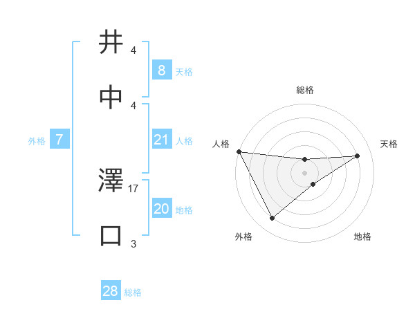 井中 澤口さんの総格は28画の1点!