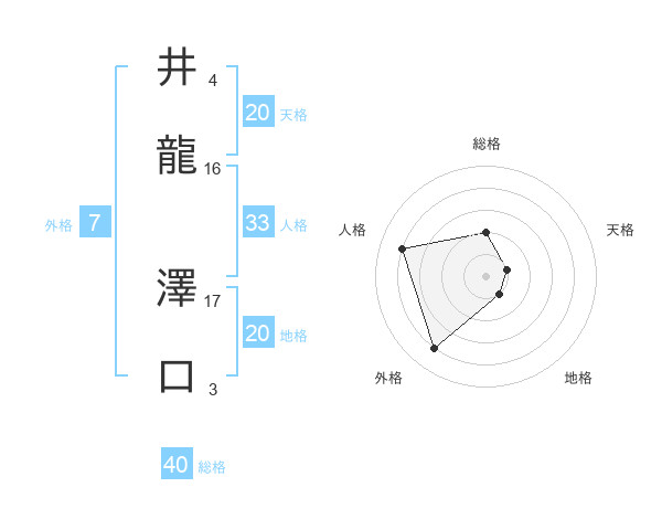 井龍 澤口さんの人格は33画の4点!