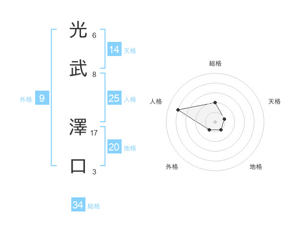 光武 澤口さんの総格は34画の2点!