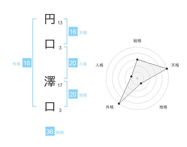 円口 澤口さんの天格は16画の5点!