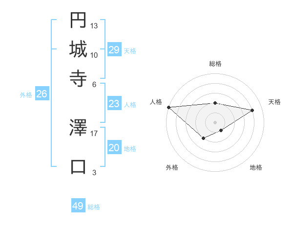 円城寺 澤口さんの総格は49画の2点!