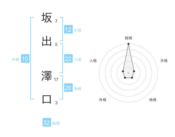 坂出 澤口さんの総格は32画の5点!