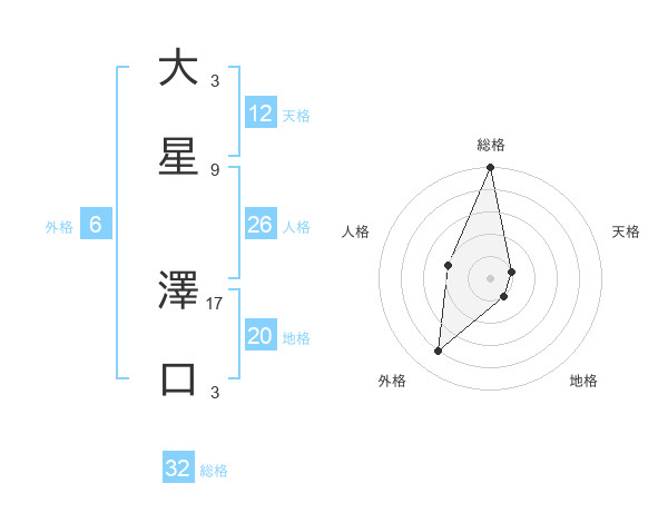 大星 澤口さんの総格は32画の5点!