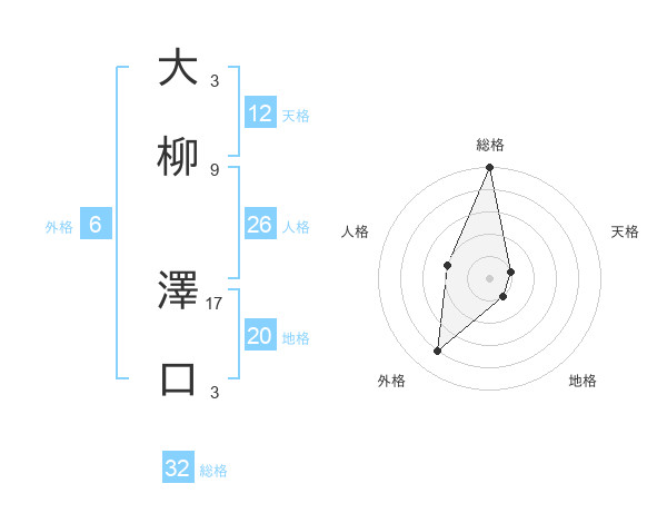 大柳 澤口さんの総格は32画の5点!