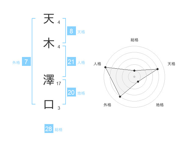 天木 澤口さんの総格は28画の1点!