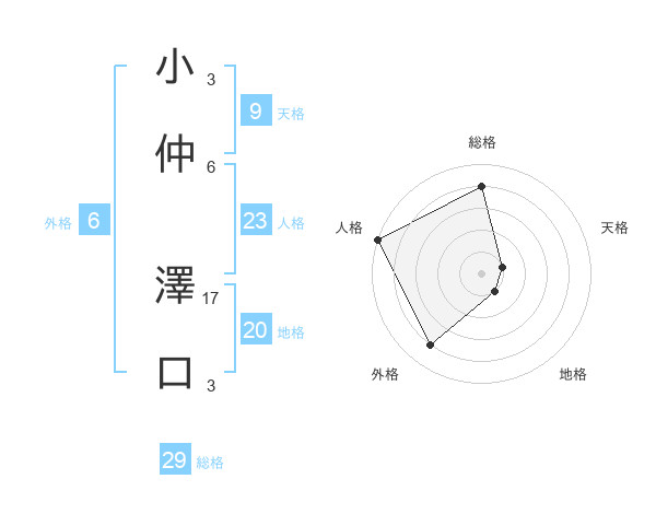 小仲 澤口さんの総格は29画の4点!