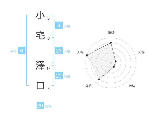 小宅 澤口さんを姓名の画数から五運を鑑定