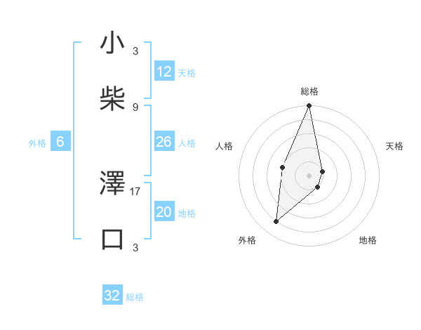 小柴 澤口さんの総格は32画の5点!