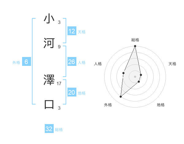 小河 澤口さんの総格は32画の5点!
