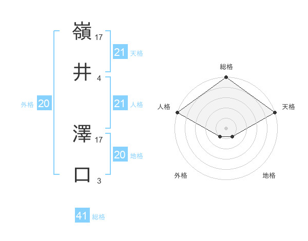 嶺井 澤口さんの天格は21画の5点!