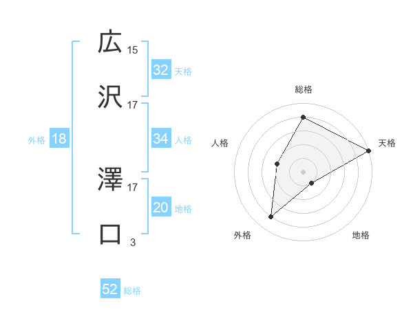 広沢 澤口さんの総格は52画の4点!